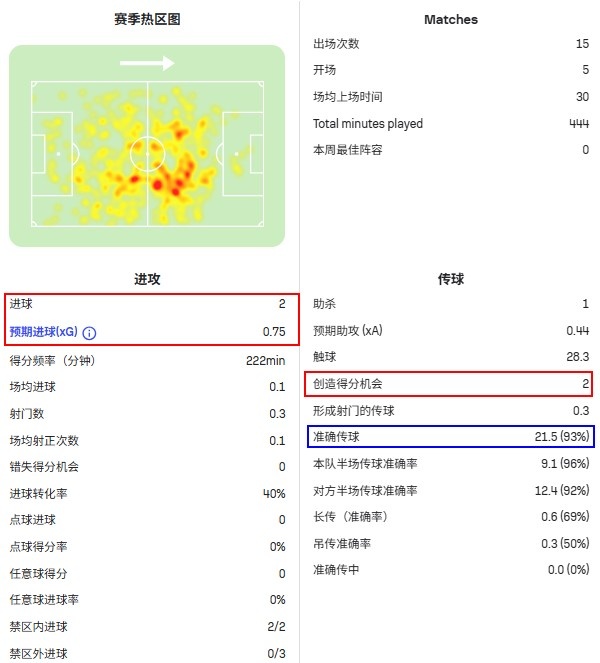 贝尔纳尔本赛季西甲场均踢30分钟,传球次数是21.5次,这个数据在巴萨后腰里是偏少的。不过他一共才踢了444分钟就收获了2球1助攻,创造了2次绝佳得分机会,这充分说明了他在直接参与进球方面的天赋。